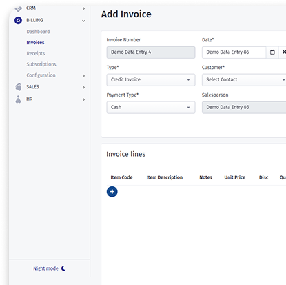 The Sales module takes you from confirmed order to payment, handling invoicing and receipts along the way. Integrated with CRM and Billing, it keeps every deal moving from confirmation to cash.