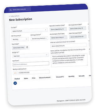 The Billing module simplifies recurring and one-off payments with automated subscriptions, reminders, and clear financial visibility, integrated with your accounting systems.